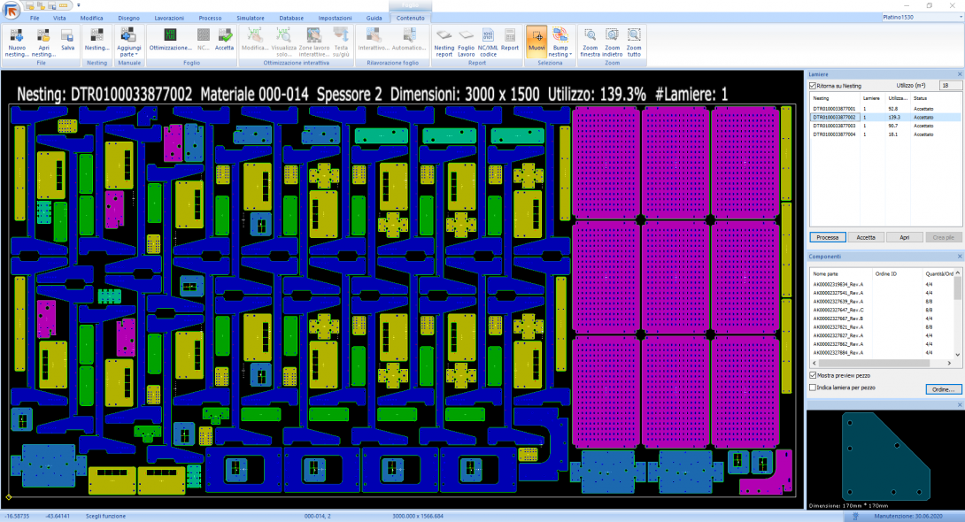 The Platino Fiber allows ATP to cut very small pieces with reduced sheet thicknesses, down to 0.5 mm. The company used to use wire EDM for this type of processing in the past because it was very difficult to get high dimensional accuracy using blanking dies without deforming the piece. In terms of environmental sustainability and in addition to replacing the EDM processing, the Prima Power machine has also allowed ATP to avoid processing satin finishing. Material can be cut directly with the protective film and use of the wet polishing machine is no longer required. This brings about both economic and ecological savings by removing the disposal of sludge and cloths for satin finishing. In terms of optimal sheet metal exploitation, Prima Power programming software adds the different geometries of the pieces to be produced to the available area according to the quantities entered by the operator and calculates the number of sheets required to complete production with limited waste. “The software,” highlights Prandelli, “is another Prima Power strong point, because it gives high performance whilst also being intuitive and easy to use, which reinforces the flexibility of the machine. We avoid stocking up on smaller volumes and batches of pieces. As for punching machines, it's now easier for us to customise a product for customers who require drilling or ventilation openings on the standard panel. Furthermore, laser power was parametrised according to the thickness of the sheet and material type during its installation.” This means ATP operators don’t have to change processing parameters as the product changes. The Platino is designed to work even on unmanned shifts. Indeed, it is equipped with an auto shut-off system ?? and a Compact Server loading and unloading system, with an automatic nozzle changer and a camera that checks for tool centring and wear. If excessive nozzle wear is detected, the system will replace the tool.