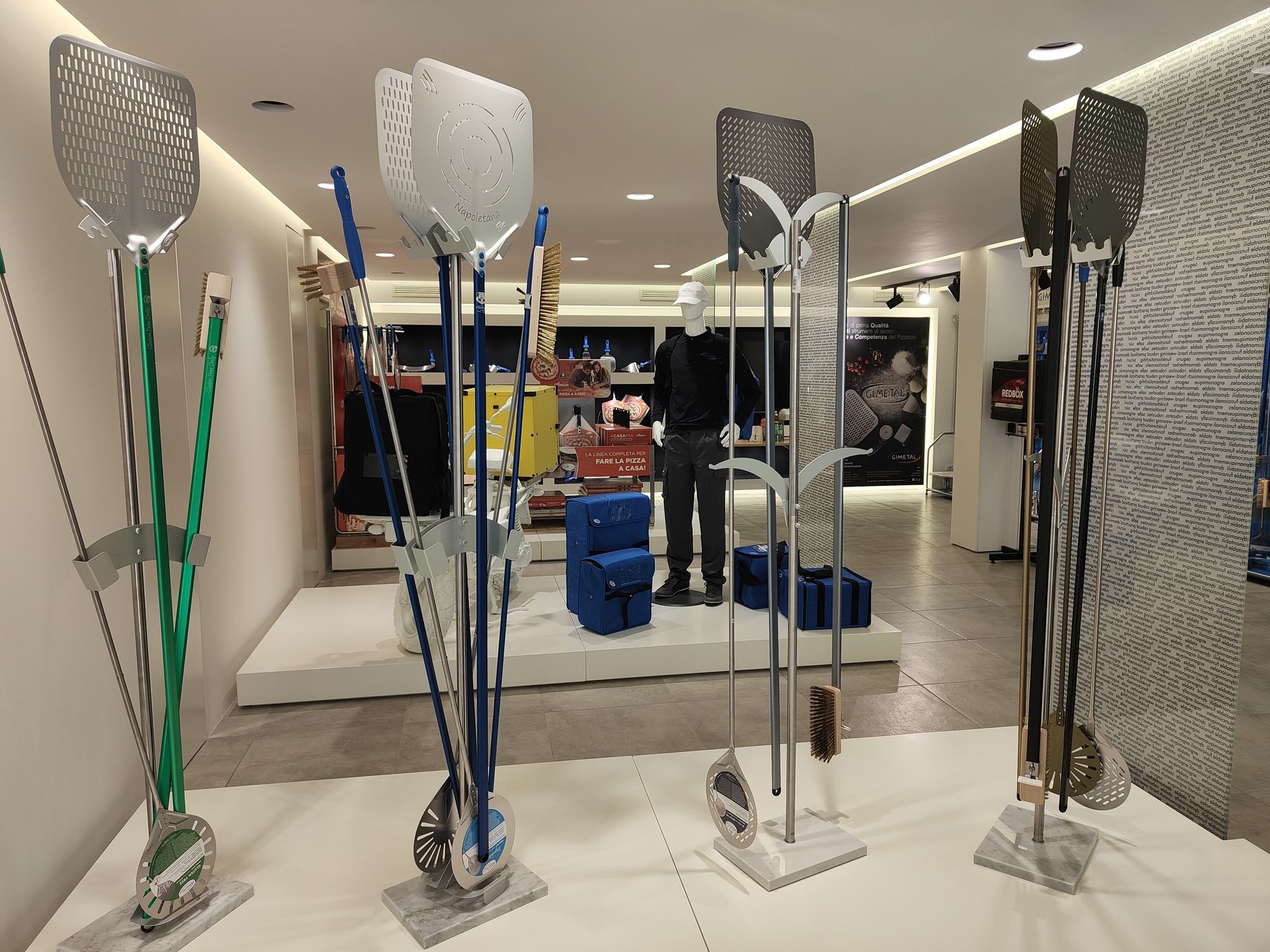 Going into more detail about pizza equipment, D'Annibale explains: “Our customer mainly needs three items. The first is the pizza peel, which must have at least the necessary surface area to place the rolled dough on top; this is usually made of aluminium to ensure lightness. Next, a smaller peel is required to rotate the pizza in the oven. This tool is usually smaller since agility and manageability are preferred: larger dimensions are no longer necessary since the pizza gains structure as it cooks and you don't need a tool that holds the whole pizza; this needs to be made of steel to protect against the increased heat exposure; the third tool is the oven cleaning brush”.